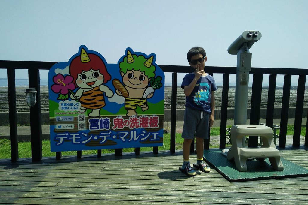 帶孩子一起去日本143【九州環島自駕遊/宮崎】2018/07-->前往SUN MESSE日南公園沿路的海岸風光-->崛切峠-->鬼の洗濯板-->いるか岬